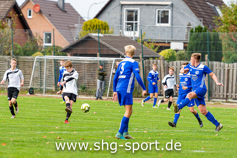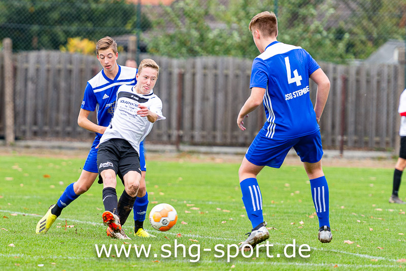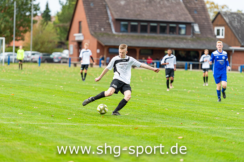 JSG Samtg. Niedernwöhren/Enzen - JSG Steimbke 5:1 (2:1). Der Heimsieg hielt die Gastgeber auf dem zweiten Rang, mit 13 Punkten punktgleich mit Tabellenführer JSG Eystrup. Das Spiel begann mit druckvollen Angriffen der Gastgeber, woraus einige gute Chancen resultierten. Janis Fromme schloss einen dieser Angriffe mit dem Treffer zum 1:0 ab (14.). Es dauerte allerdings nur zwei Minuten, dann schlug die Antwort in Form eines 20-Meter-Schusses von Luis Oetting zum 1:1 im Winkel des Tores der Gastgeber ein. Im Anschluss erarbeitete sich Steimbke eine leichte Feldüberlegenheit, ohne jedoch entstehende Chancen zu nutzen. Das wurde bestraft, kurz vor der Halbzeit erzielte Moritz Bölk das 2:1 für die Gastgeber (37.).