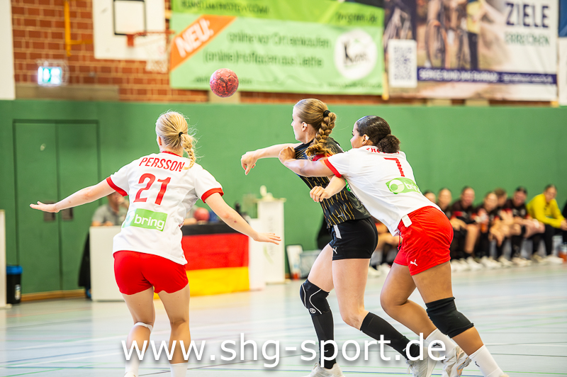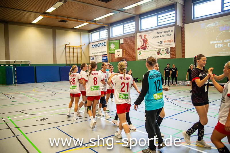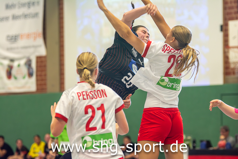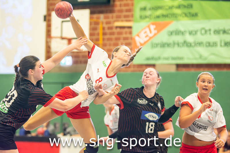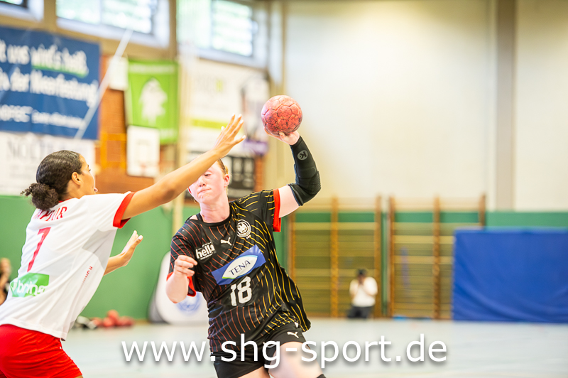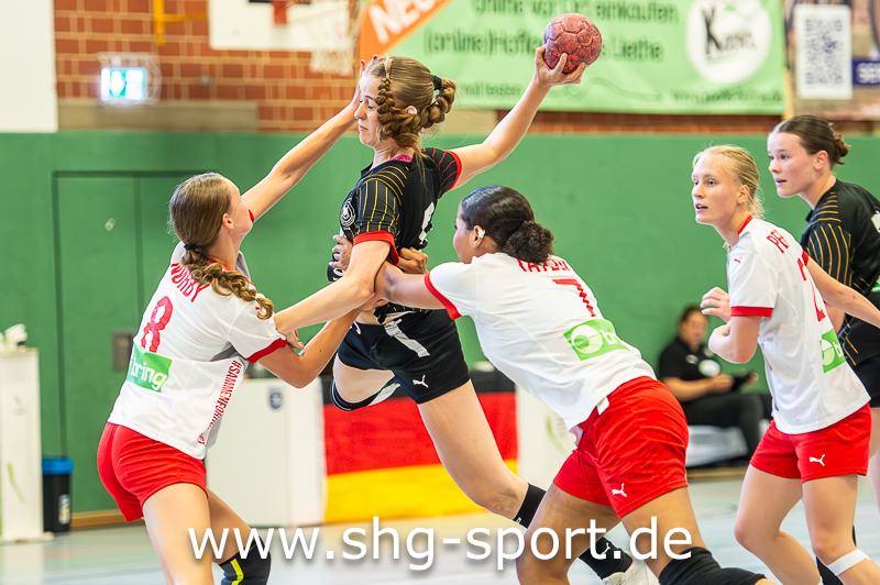 Deutschland weiblich U17/U18 - Dänemark 30:26 (18:11). Deutschland überzeugte vor allem in der ersten Halbzeit. In einem offenen Schlagabtausch führte die Mannschaft schnell 12:6 (16.), brachte diese Führung noch leicht ausgebaut mit 18:11 in die Halbzeit. Tempo und ein sehr guter Defensivverband machten den Unterschied. Nach dem Seitenwechsel kam Dänemark wesentlich besser ins Spiel. Eine jetzt offensivere Abwehr der Däninnen machte den Deutschen zu schaffen, dennoch gelang es über eine teilweise weiter gute Defensive und schnelle Angriffe über die Außen die Führung zu behaupten. Vor allem in der Schlussphase ging der Spielfluss verloren, Dänemark fand gute Lösungen und verkürzte den Abstand. Zu einer endgültigen Wende reichte es nicht mehr, die wie beim zwischenzeitlichen 27:19 acht Tore Führung Deutschlands waren zuviel.
