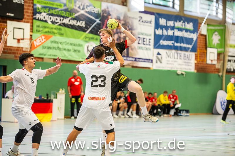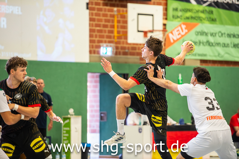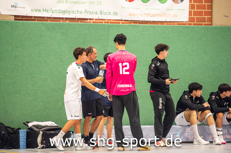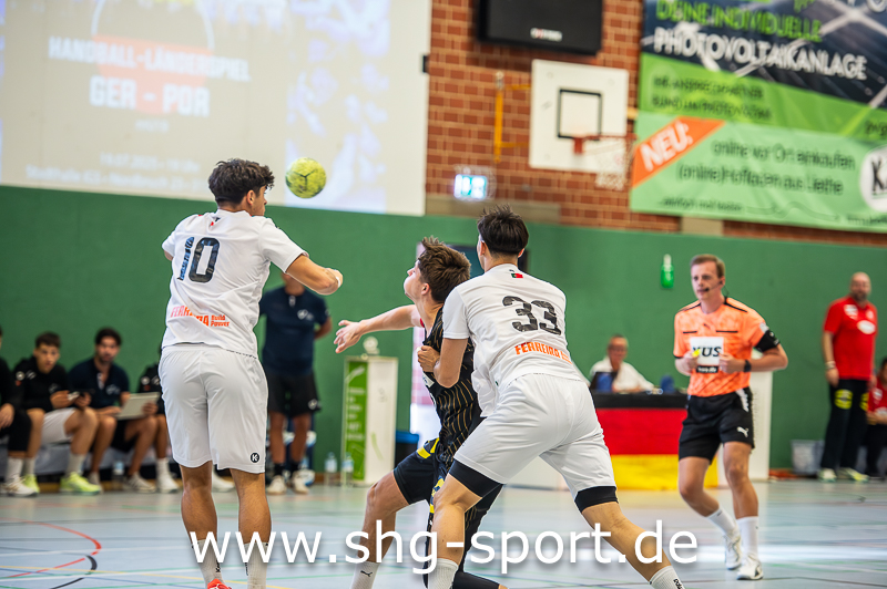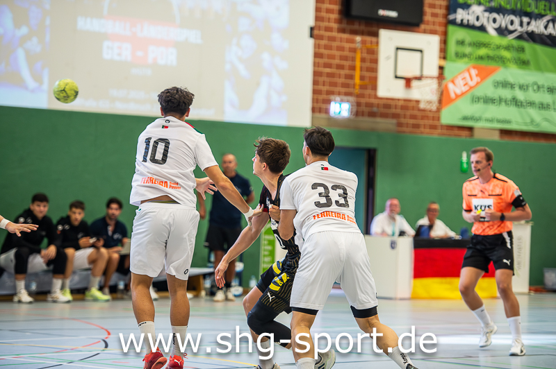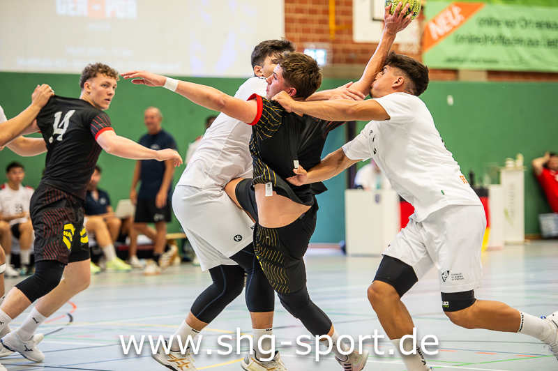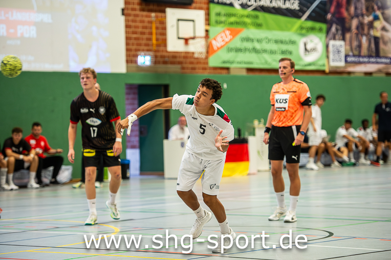 Deutschland U18/U19m - Portugal 33:32 (17:10). Im vorletzten Testspiel zur im August ausgetragenen Weltmeisterschaft sorgte Deutschland in der Schlussphase für nicht erwartete Spannung. Das Spiel begann ausgeglichen, über 5:4 (10.), dann zog Deutschland auf 7:4 (12.) weg. Portugal ließ sich aber nicht so richtig abschütteln, zeigte dabei einige spielerische Feinheiten. Dann war es die physische Präsens der Deutschen, die zusammen mit der Abwehr den Unterschied machte und die Spielkontrolle sicherte. Das machte sich dann doch bei der deutlichen 17:10-Halbzeitführung bemerkbar.