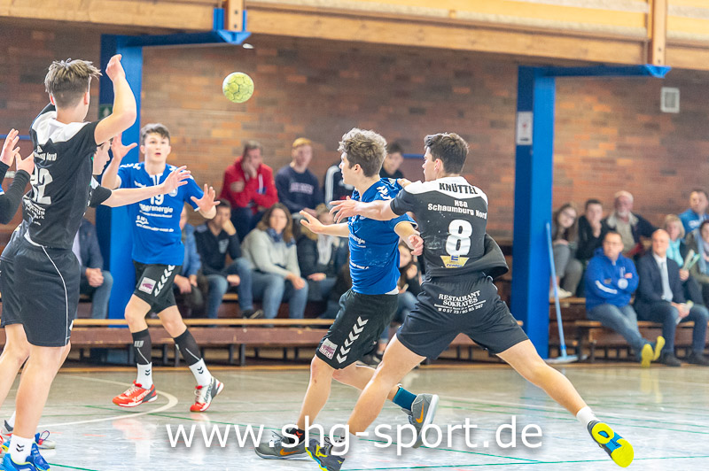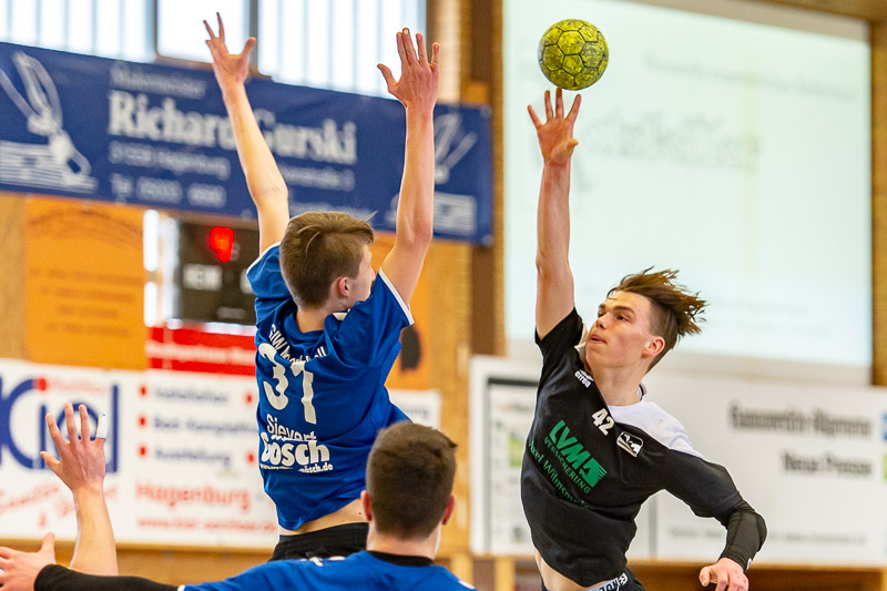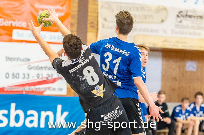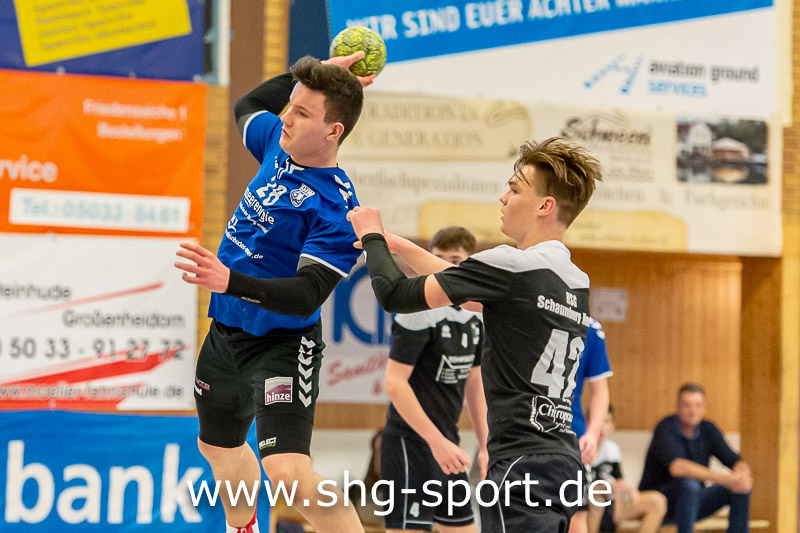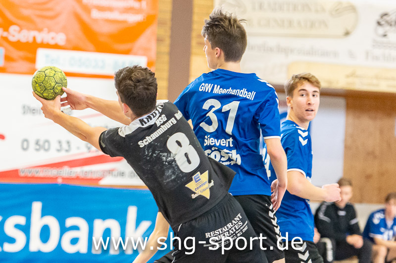 JSG GIW Meerhandball - HSG Schaumburg Nord 34:23 (19:11). Mit 14:0-Punkten und bei drei noch ausstehenden Spielen war der Heimsieg mit ziemlicher Sicherheit das Meisterstück. Die Gastgeber zeigten mit einem ausgeglichen besetzten Kader, warum sie die Liga dominieren. Auf Seiten der Gäste fehlten Haakon Wiebe und Hannes Stiller, der Tabellenzweite war nur für eine kurze Zeit in der zweiten Hälfte in der Lage, ernsthaften Widerstand zu leisten. In der 39. Minute verkürzten die Gäste nach einer starken Phase auf 20:24, dann schraubten die Gastgeber das Tempo wieder hoch, zogen schnell auf 28:20 (43.) weg. Das Trainerduo Marvin Konopka/Alexander Wenzel hob besonders die Leistung von Kreisläufer Felix Neuser und Lars Plähn auf der Angriffsmitte hervor. Sechs Punkte Vorsprung auf die HSG, damit kann die HSG die Planung für eine Meisterfeier aufnehmen.