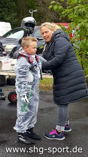Regen, Gewitter, Schneeschauer, Sonne und Wind machte das Fahren im Kart nicht zum Vergnügen. Wetterfest im Regenoverall eingepackt drehte Lenn doch immer noch sehr motiviert seine Runden. Im ersten Rennen hat er dann sogar fünf Fahrer hinter sich lassen können, drei davon aus seiner Klasse. Wie schon bei der letzten Veranstaltungen starteten beide Klassen gemeinsam. Zwei Fahrer hat er im zweiten Rennen dann hinter sich halten können. In der Tages-Gesamtwertung wurde Lenn 11. von 13 Fahrern seiner Klasse. „Ich bin zufrieden, Lenn auch. Was will man mehr“, meinte Mutter Maike, die an diesem Wochenende das Coaching allein übernehmen musste.